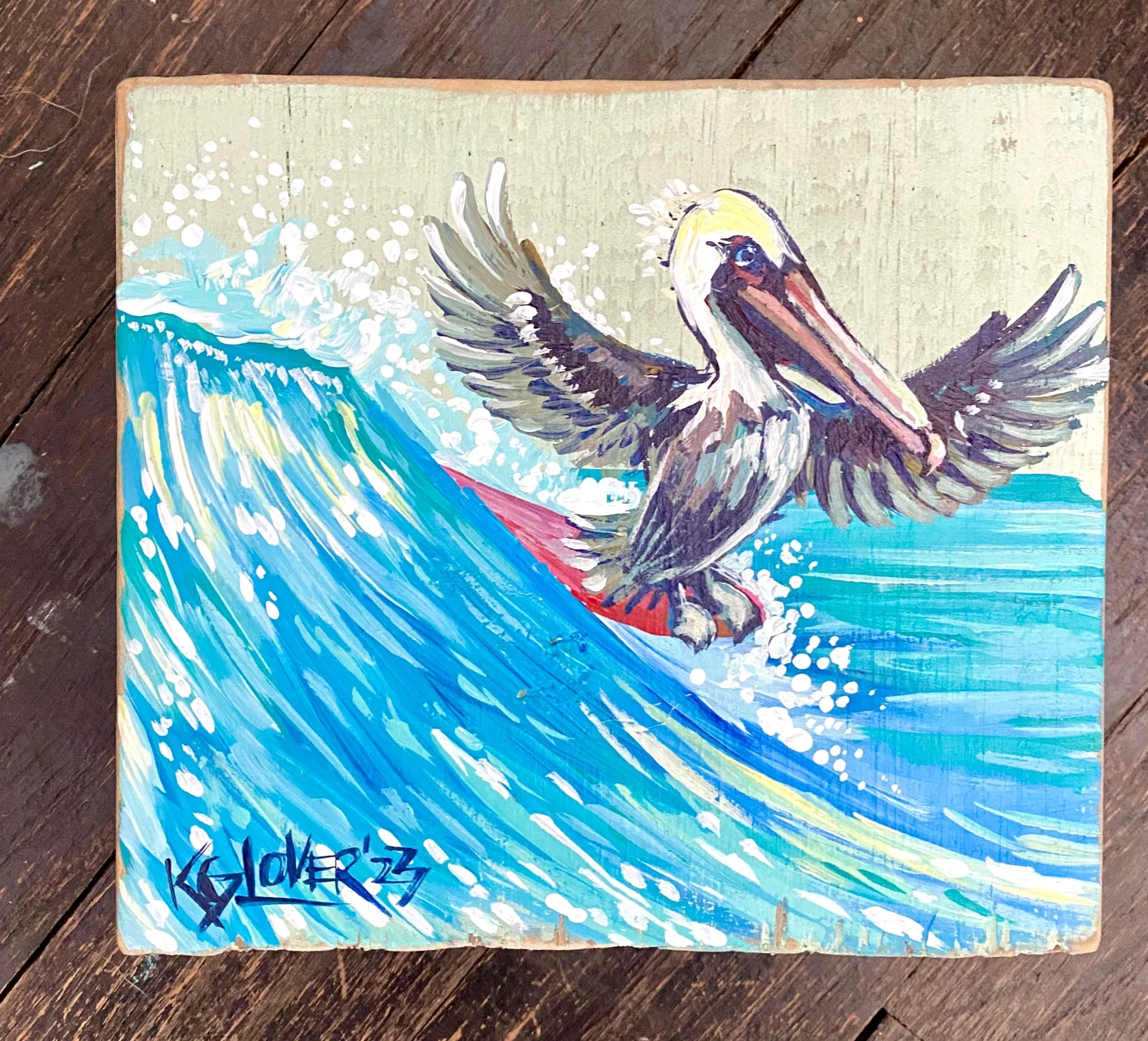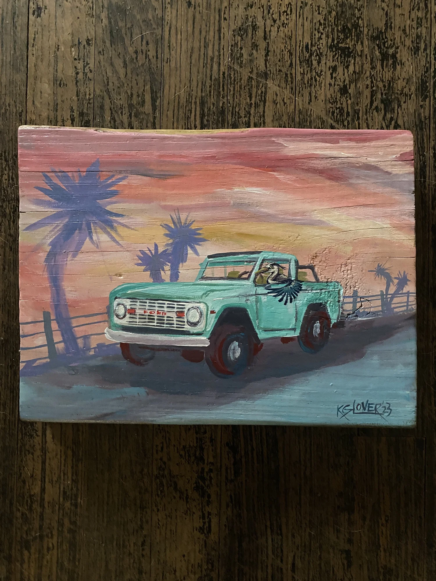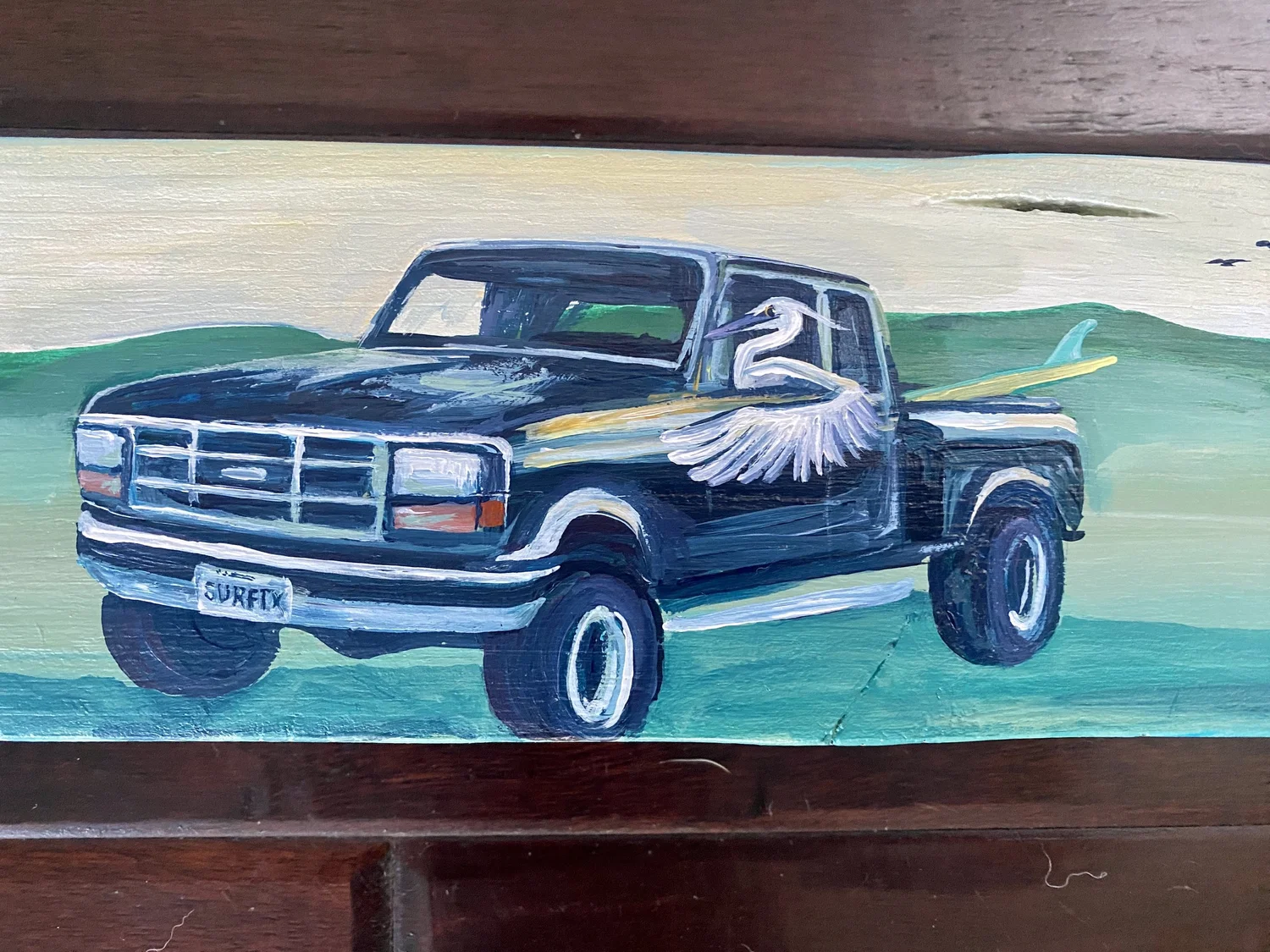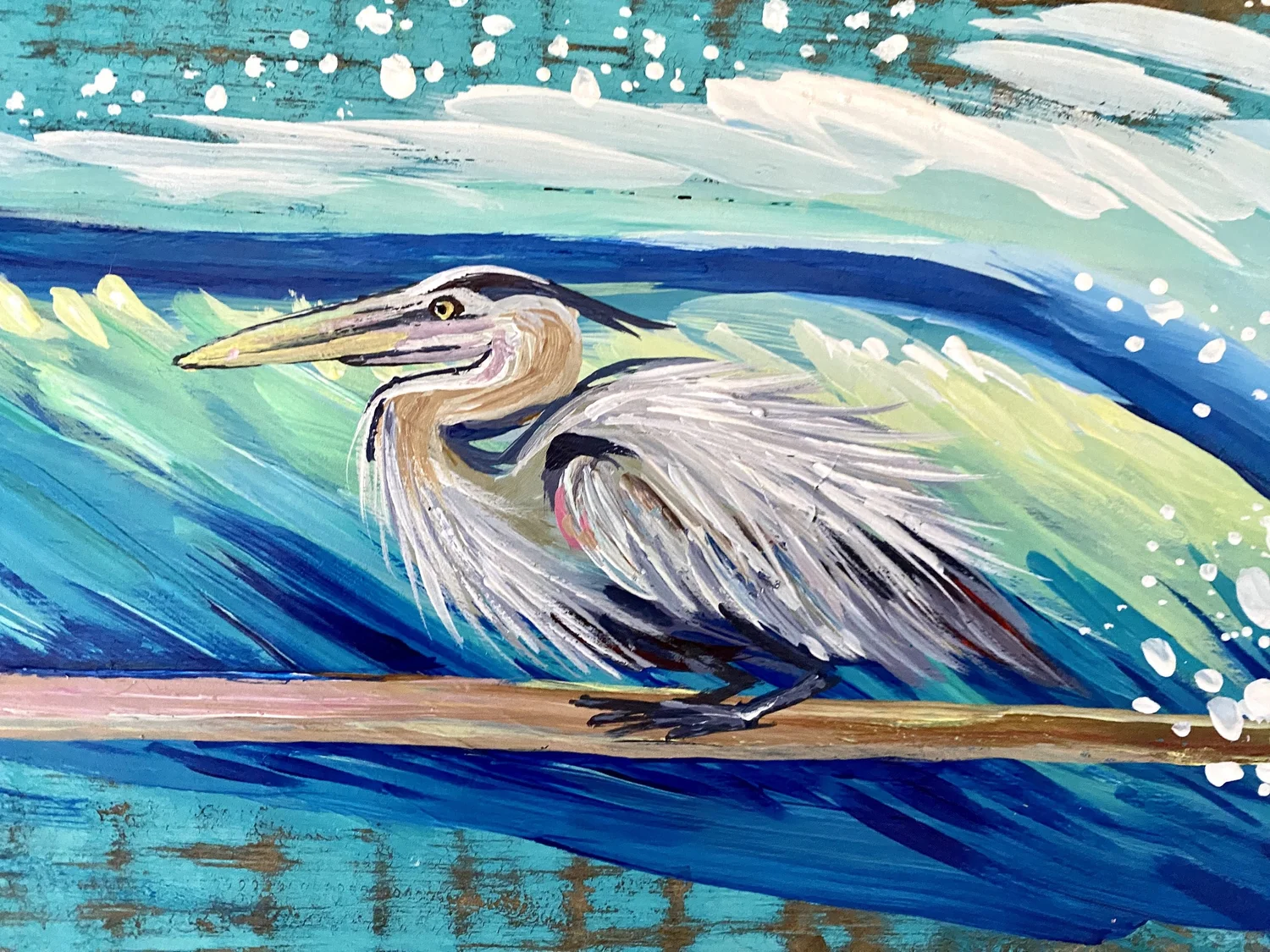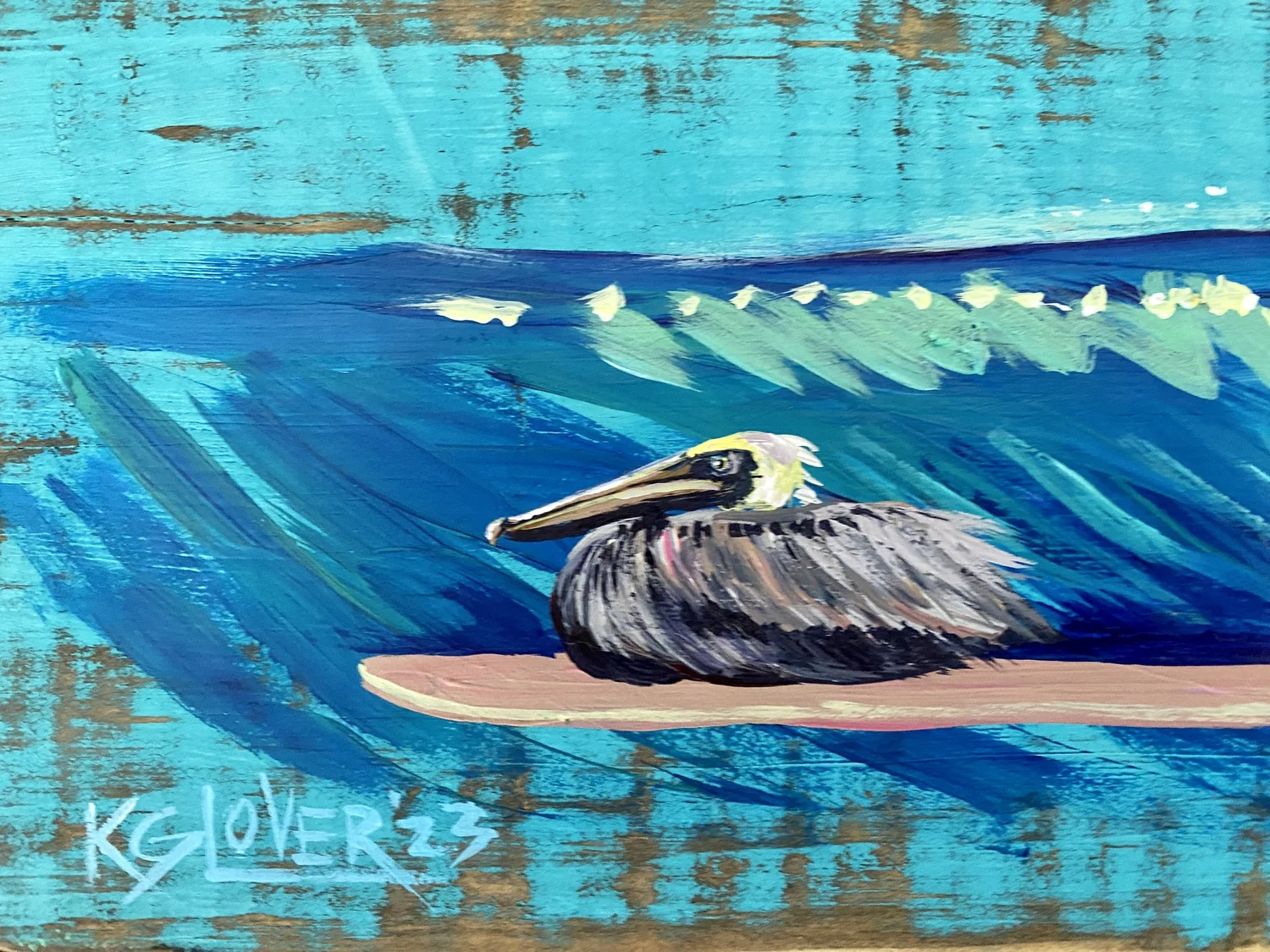 I LOVE being outdoors and seeing all the different plants and animals. Living on the Texas Coast we get to see lots of different coastal birds like pelicans, herons, egrets, spoonbills, and so many more! I’ve studied and painted these coastal birds for at least a decade now. What carelessness they have in their day to day life compared to humans; just flying around and eating in the great outdoors, looking so pretty. What if they had to get around like humans? Driving, working, entertaining themselves with activities and hobbies, possessing things, buying things.. What if a pink roseate spoonbill was driving that pretty cherry red Bel Air that I’ve been seeing? The thought made me laugh, so I decided to paint it just to see. This series began with “Spoonbill in a Bel Air” in late winter of 2023 and is ongoing.